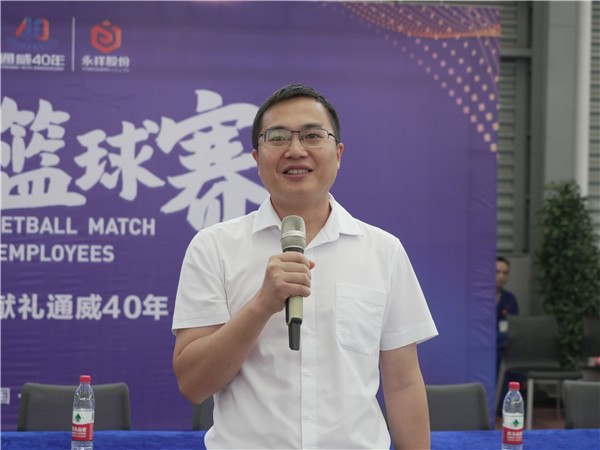 為慶祝通威成立40年,豐富廣大職工業(yè)余文化生活,增強團隊凝聚力,展現(xiàn)拼搏向上的永祥精神,9月21日,永祥股份“獻禮通威40年”職工籃球賽在永祥新能源籃球館拉開帷幕,永祥股份副總經(jīng)理兼永祥新能源常務(wù)副總經(jīng)理羅周出席開幕式并宣布籃球賽開幕。