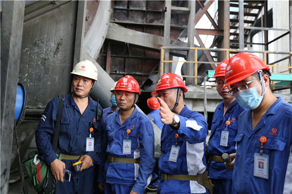 廖總一行前往熟料工段回轉窯,從回轉窯窯頭、窯尾到達篦冷機,在機修崗位工的介紹下進行巡檢。通過觀察和機修的介紹了解機修專業巡檢工日常的巡檢執行情況。對在巡檢過程中發現的問題登記在冊,屬地按照“四定”原則進行整改。跟蹤人員定期進行跟蹤反饋,確保到期整改完成率100%。