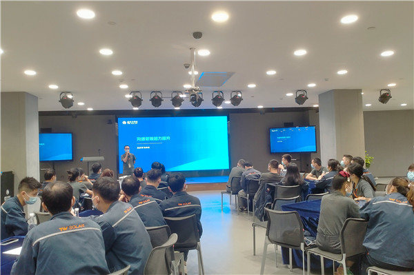 溝通,作為實現(xiàn)高效管理的關鍵技巧,是管理者營造良好團隊溝通氛圍,建立良好跨部門協(xié)作關系,展現(xiàn)高質量團隊管理水平的重要基石。持續(xù)提升一線管理人員的溝通能力,對于建設和諧穩(wěn)定、效益高、創(chuàng)造力強,協(xié)作力強的一線團隊至關重要。未來,通威光伏學習中心還將圍繞一線管理人員培養(yǎng),持續(xù)開展工作效率提升、匯報能力提升、質量管理能力提升等多個主題的賦能提升活動,致力于培養(yǎng)多技能、高素養(yǎng)的一線管理者,進一步提升一線團隊的凝聚力、戰(zhàn)斗力,朝著建設一流的“五型”太陽能電池片制造團隊的目標持續(xù)奮進。