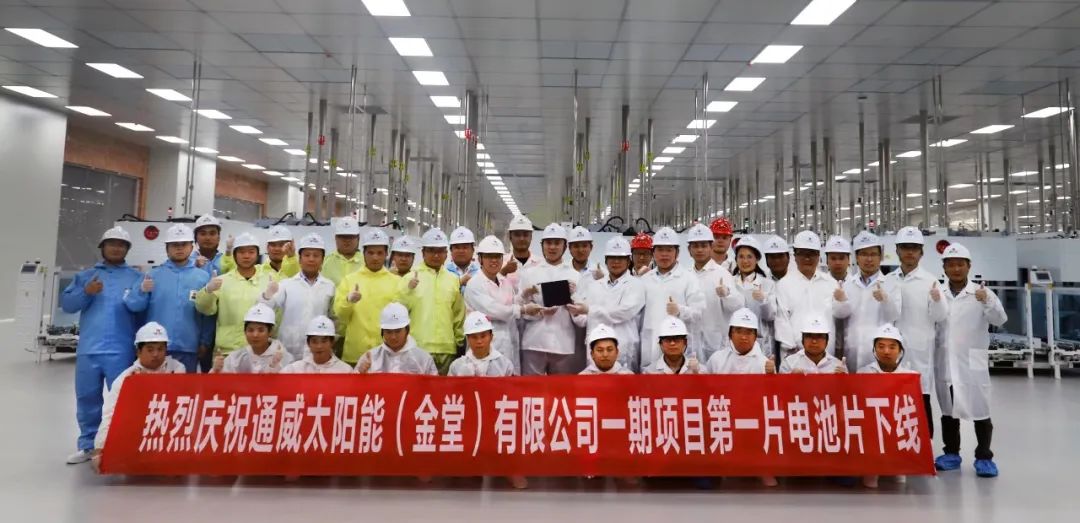▲2021年5月28日,通威太陽能金堂基地一期項目第一片電池片順利下線