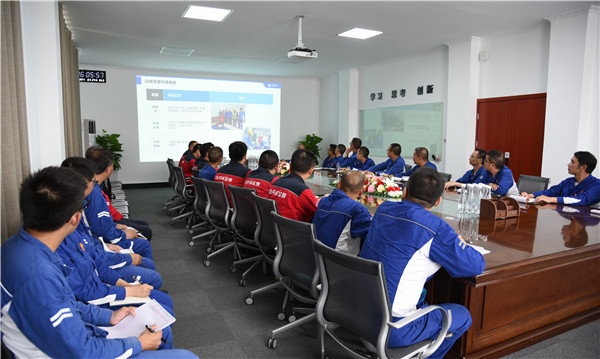 管理提升小組對特種設備壓力容器的檢驗記錄管理、防雷建筑接地、防暑急救應急演練、防暑應急物資、現場設備設施的使用維護保養、安全設施的運行情況、現場標識標牌目視化管理等進行檢查,通過檢查對存在的偏差項進行總結。末次會上,永祥股份管理提升高級工程師王國進作專項匯報。