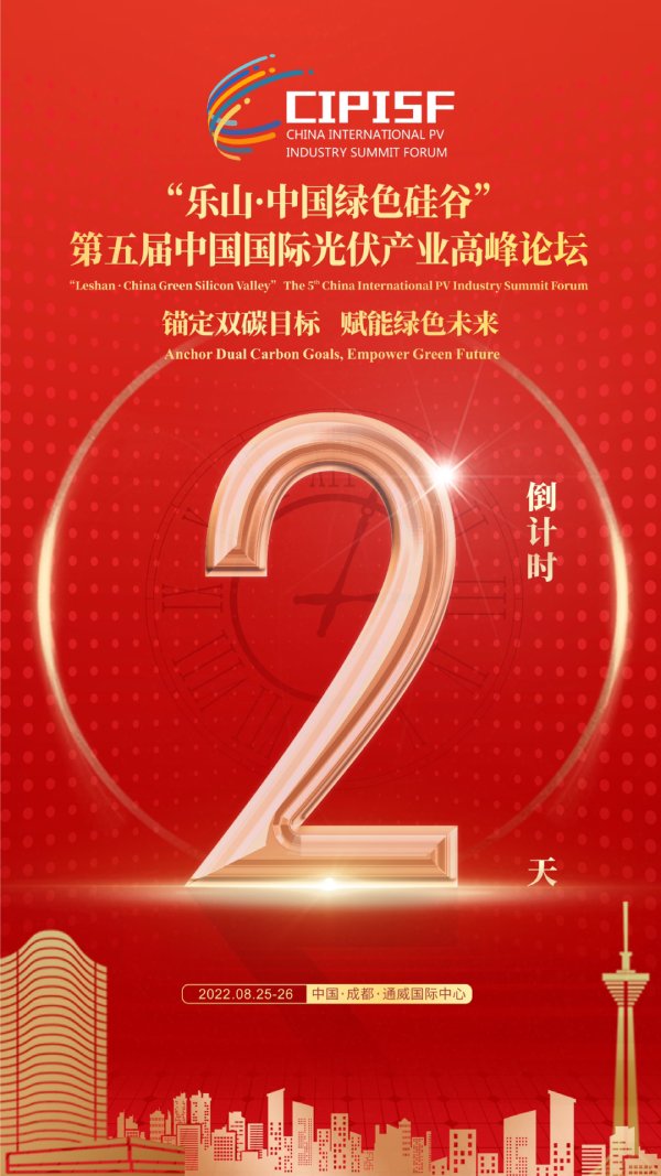 2022第五屆中國國際光伏產業高峰論壇倒計時兩天,即將于8月25-26日在成都通威國際中心盛大啟幕。屆時,來自政、產、學、研的各界領導嘉賓、行業精英匯聚一堂,圍繞全球氣候變化、產業升級、行業良性發展等熱點,展開智慧碰撞,共話新時代光伏發展路徑,助力全球“雙碳”目標早日實現。