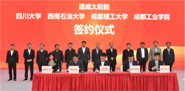 ▲2017年11月18日,通威太陽能與四川大學、西南石油大學、成都理工大學、成都工業學院簽訂《校企合作協議》