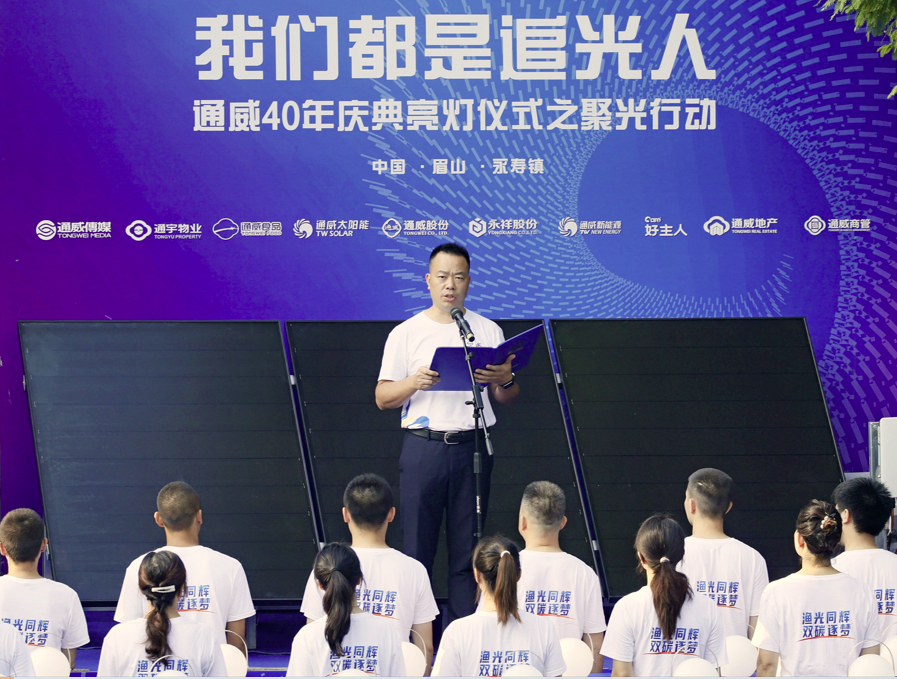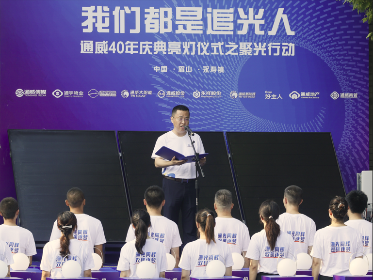 四十年來,追光不息、奮斗不止,通威向著卓越不斷進發(fā)。在劉漢元主席帶領(lǐng)下,一代代通威人攜手并肩,砥礪前行,推動通威持續(xù)穩(wěn)健快速發(fā)展。進入新的發(fā)展階段,全體通威人將繼續(xù)傳承通威基因、賡續(xù)精神血脈,扛起時代賦予的歷史使命,為推動綠色高質(zhì)量發(fā)展、實現(xiàn)全人類的可持續(xù)發(fā)展作出更大貢獻。