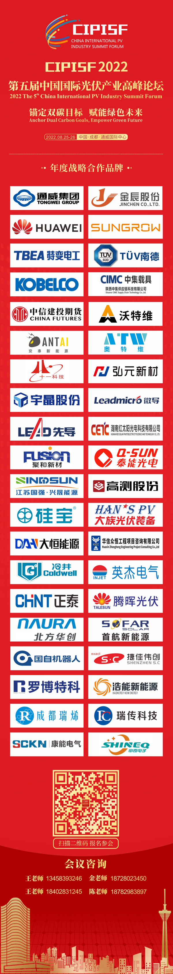 8月25日-26日,以“錨定雙碳目標 賦能綠色未來”為主題的2022第五屆中國國際光伏產(chǎn)業(yè)高峰論壇將在成都通威國際中心盛大啟幕。論壇將再次匯聚起中央、省市各級政府領導、權威專家學者、龍頭企業(yè)領袖的磅礴力量,積極應對挑戰(zhàn),主動擁抱未來,攜手共同發(fā)展,為牢牢把能源的飯碗端在自己手里貢獻光伏力量!