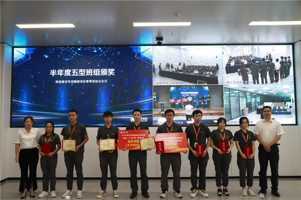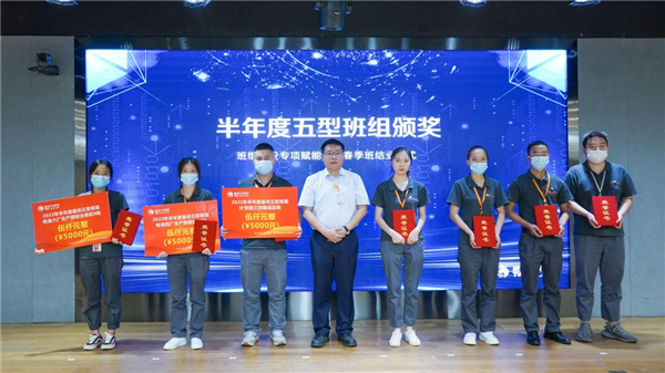 隨后合肥、雙流、眉山、金堂基地及通合項目的班組學員代表依次對半年來班組建設成果進行匯報展示,春季班的全體成員及導師現(xiàn)場聆聽學習各基地班組建設優(yōu)秀經(jīng)驗,對標審視各自班組的不足,并為未來建設優(yōu)秀班組打開新思路。在春季班項目實施過程中,涌現(xiàn)了許多學習成果突出、班組建設成果明顯的學員和團隊,活動現(xiàn)場對表現(xiàn)優(yōu)異的團隊及個人進行頒獎,現(xiàn)場掌聲雷動。