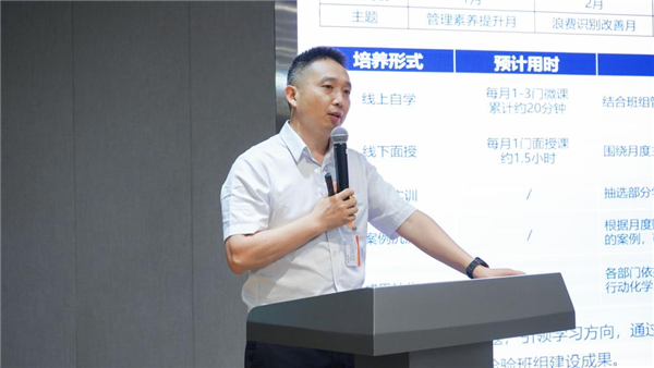 活動尹始,通威太陽能總經(jīng)理助理陳君對項目實施成果進行回顧總結,半年來光伏學習中心圍繞五型班組打造建立了完善的評優(yōu)表彰機制,采用線上自學、線下探討、現(xiàn)場項目實踐、案例分析沉淀及展示匯報等多種方式賦能提升一線管理者綜合能力,助力一線班組管理者及高潛儲備人才學習班組建設技能,厘清班組管理思路。陳總表示,上半年圍繞五型班組建設,各基地、各部門都營造了良好的班組PK氛圍,班組建設成果突出,未來希望通過持續(xù)的明方向、作比較、提技能催生更多優(yōu)秀團隊。