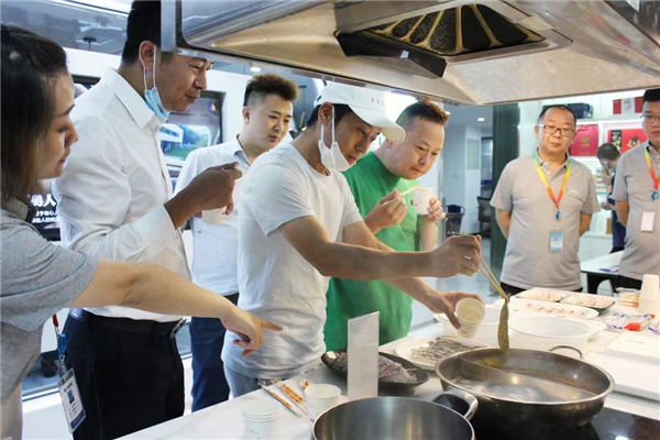 陳總邀請(qǐng)建新餐飲公司領(lǐng)導(dǎo)團(tuán)隊(duì)對(duì)公司產(chǎn)品進(jìn)行品鑒,李總一行對(duì)通威食品旗下的蝦滑、蝴蝶蝦、蝦仁、烏魚(yú)片、脆羅非魚(yú)片、魚(yú)丸等產(chǎn)品品質(zhì)、口感贊不絕口,并表示通威食品現(xiàn)有很多產(chǎn)品系列都能應(yīng)用到建新餐飲旗下的餐飲門(mén)店中。