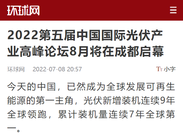 環(huán)球網(wǎng)聚焦2022第五屆中國(guó)國(guó)際光伏產(chǎn)業(yè)高峰論壇