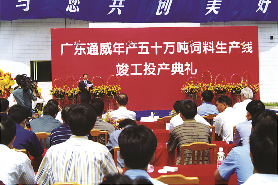 ▲ 2000年7月,廣東通威年產50萬噸飼料生產線竣工投產