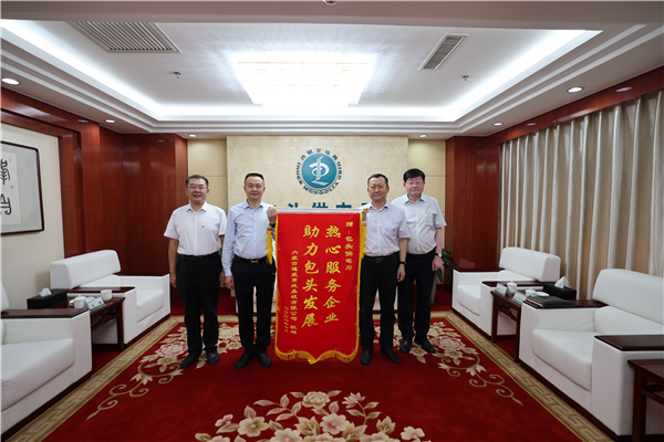 外部線路成功送電后,6月29日,內(nèi)蒙古通威總經(jīng)理袁中華向包頭市供電局贈送錦旗,對包頭市供電局在短時間內(nèi)滿足內(nèi)蒙古通威二期項目供電表示感謝。