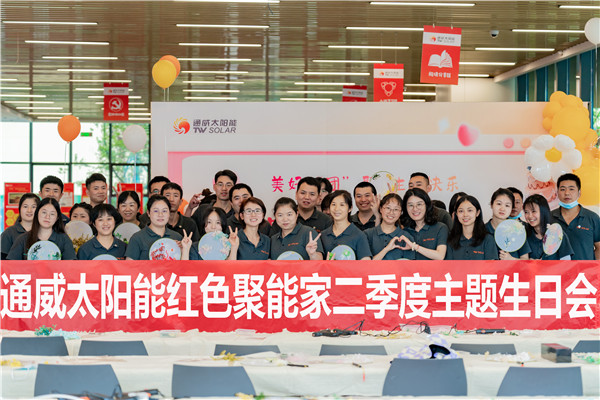 通威·紅色聚能家始終致力于增強員工歸屬感、幸福感,關(guān)愛關(guān)懷員工精神生活,通過每季度舉辦各類主題的員工生日會,讓員工在公司能感受到“家”的溫暖。未來,通威太陽能將持續(xù)創(chuàng)新關(guān)懷模式,與員工共奮斗、同分享,助推公司高質(zhì)量發(fā)展。