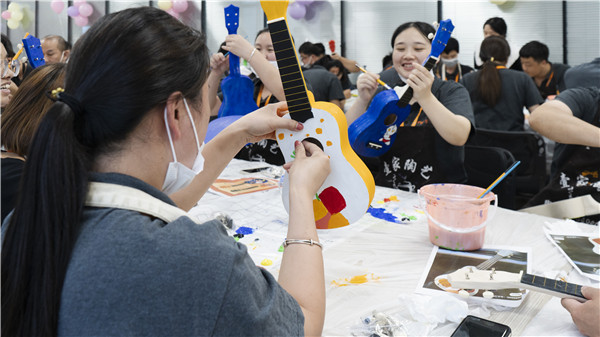 本季度生日會以DIY為主要形式,各基地開展尤克里里DIY、團扇DIY、永生花紗繃DIY等主題活動。活動現(xiàn)場,壽星們穿戴好圍裙,通過對色彩和圖案的自由調(diào)配,制作出獨一無二的手工作品,或呆萌可愛,或個性十足,深得壽星們喜愛,整個過程治愈解壓。