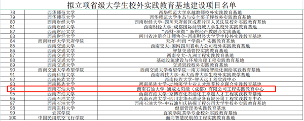 6月13日,四川省教育廳官方網站公示了“擬立項省級大學生校外實踐教育基地建設項目名單”,通威太陽能與西南石油大學共同申報的省級大學生校外實踐教育基地建設項目成功立項。