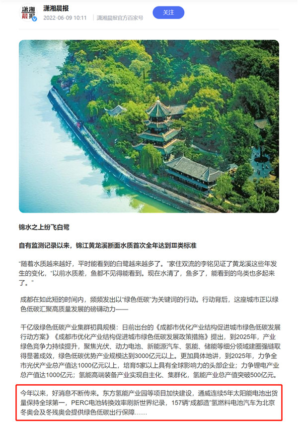 6月9日,瀟湘晨報(bào)、錦觀新聞先后以“綠色低碳發(fā)展,匯聚高質(zhì)量發(fā)展動(dòng)力”為題,聚焦通威太陽(yáng)能助力綠色低碳產(chǎn)業(yè)發(fā)展。