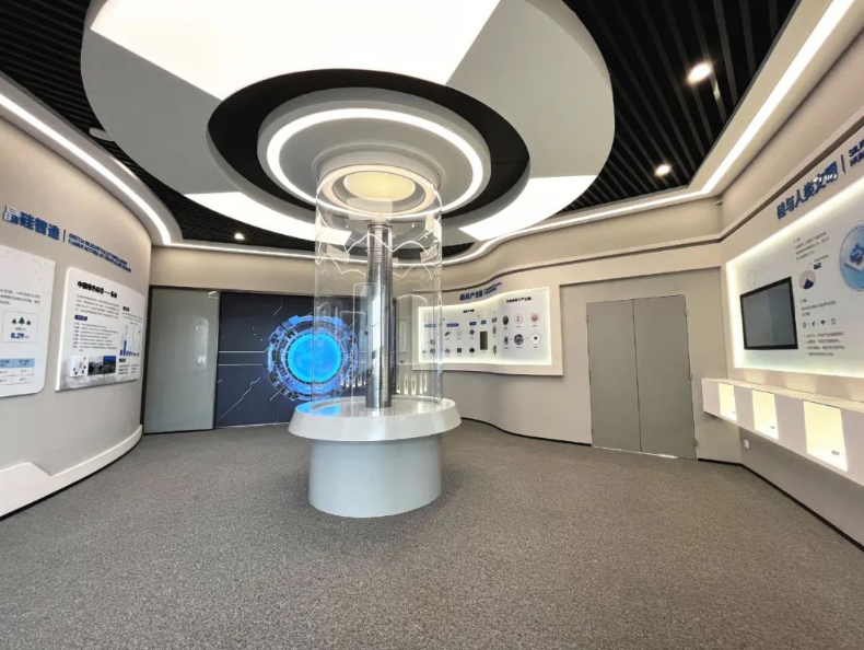 永祥股份數字體驗中心為單體展館建筑,室內建筑面積達2498㎡,以永祥股份逐漸發展壯大歷程為主線,選取歷史背景與現實發展相結合的二元展示結構,構建縱深、立體、明朗的展示空間,通過高科技的多媒體設備以及配套聲、光、電技術的使用,講述企業深厚的產業基礎、雄厚的技術研發實力、輝煌的發展成就、獨特的企業文化和廣闊的發展前景,進一步強化永祥股份作為全球高純晶硅龍頭企業的品牌影響力。