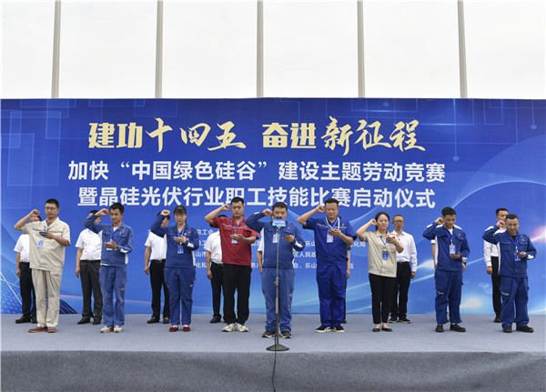比賽旨在激發晶硅光伏產業職工崇尚技能、勤學苦練、增創一流、求實奉獻的勞動精神,充分展現執著專注、精益求精、一絲不茍、追求卓越的工匠精神,通過以賽促學,以賽練兵,以賽強技,培養造就一批具有精湛技藝的產業高技能人才,推動技能人才隊伍發展壯大和整體素質提升,助力樂山加快“中國綠色硅谷”建設與發展。本次“加快‘中國綠色硅谷’建設主題勞動競賽暨晶硅光伏行業職工技能比賽啟動儀式”選擇在永祥召開,體現了省市區各級政府部門對永祥的高度信任和肯定。
