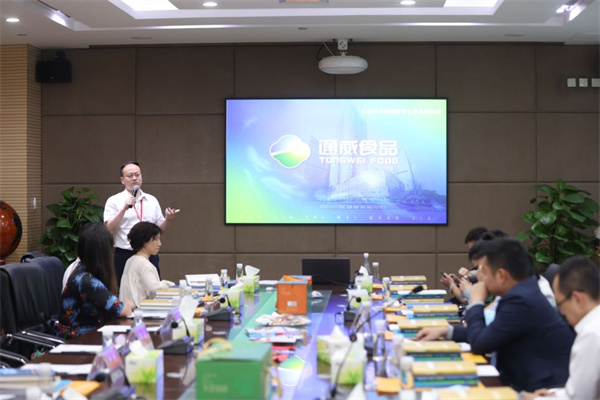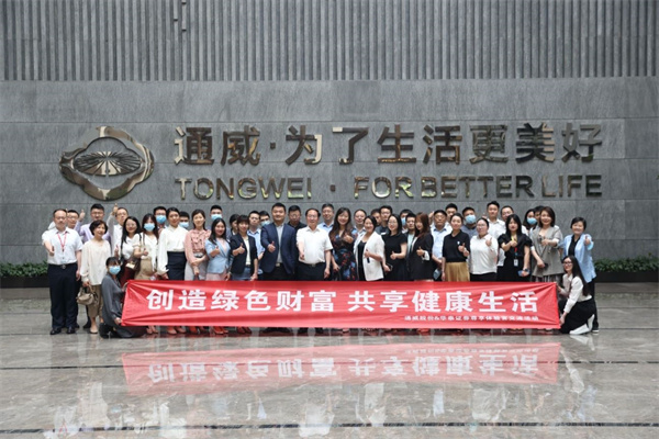華泰證券四川分公司副總經理李虓以及川潤股份、華微電子、川江投資、硅寶科技、佳緣科技聘、運達科技、富森美、新華文軒等30余位四川上市公司尊享體驗官嘉賓蒞臨通威參觀交流。通威股份副董事長嚴虎、董事會秘書嚴軻,四川通威食品董事長陳波,通威全農惠總經理王珊等熱情接待并座談。