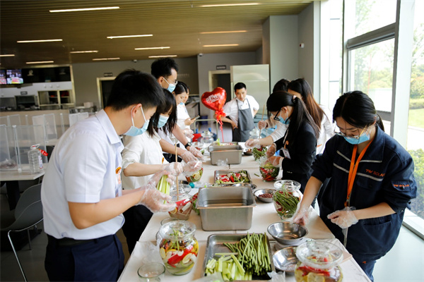 5月7日,各基地食堂紛紛推出孕媽媽特色菜、職場媽媽特價菜、美容養顏湯等專屬福利,致敬奮斗在生產一線的通威媽媽們。現場還設有花藝、手工泡菜、輕食烹調等DIY活動,活動現場熱鬧非凡,職場媽媽化身萬能女王,一雙巧手玩轉工作和生活,可謂是上得廚房,下得廳堂。最后女職工代表將用心制作的美味與節日的快樂帶回家與母親、孩子共同分享。
