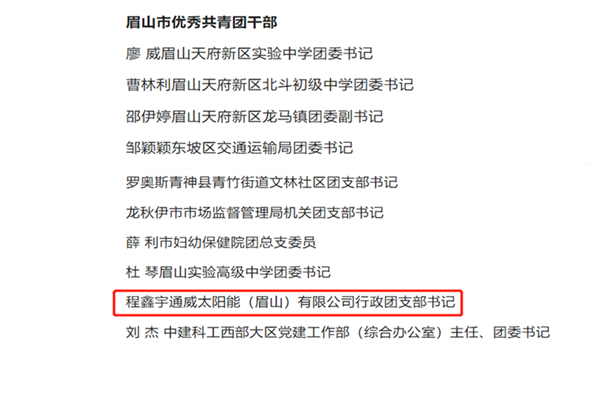通威太陽能(眉山)有限公司行政團支部書記獲“眉山市優秀共青團干部”