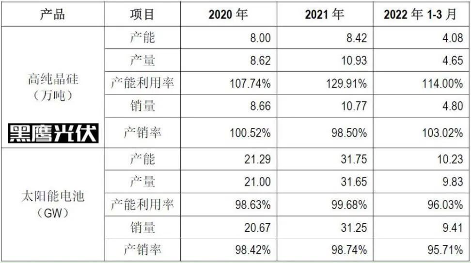 4月25日,通威股份發(fā)布了一份《關于高純晶硅和太陽能電池業(yè)務發(fā)展規(guī)劃實施進展及后續(xù)規(guī)劃的公告》:截止2021年底,通威已累計建成18萬噸高純晶硅產能和 45GW太陽能電池產能,均順利完成2020—2021年階段性目標。