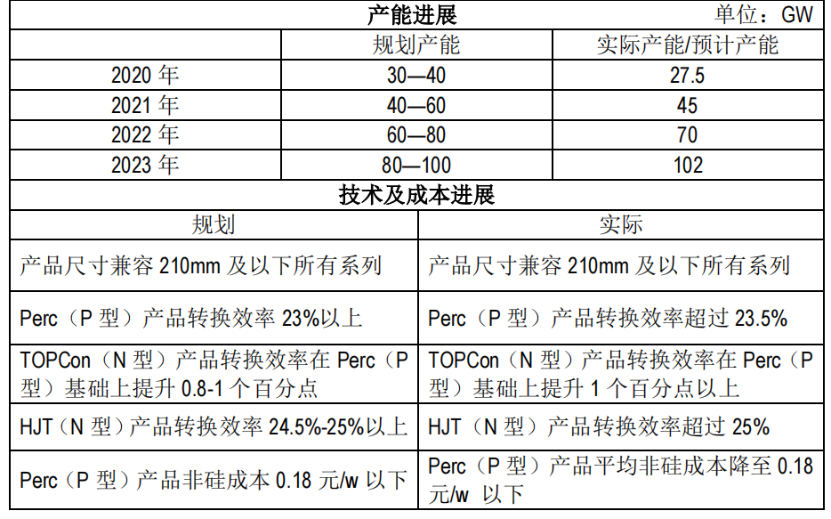 目前,公司 210mm、182mm 等大尺寸產(chǎn)能呈全面覆蓋趨勢,產(chǎn)品結(jié)構(gòu)將進(jìn)一步優(yōu)化,單晶 Perc 產(chǎn)品轉(zhuǎn)換效率已超過 23.5%,產(chǎn)品平均非硅成本已降至 0.18 元/W 以內(nèi)。