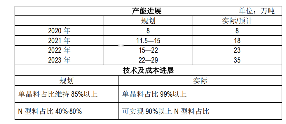 另外,從生產(chǎn)技術(shù)和成本進(jìn)展上,在四年中期規(guī)劃目標(biāo)所提出的單晶料占比、N 型料占比、電子級高純晶硅生產(chǎn)、生產(chǎn)成本和現(xiàn)金成本等細(xì)分指標(biāo)上,通威都將同步或者超額實現(xiàn)當(dāng)初預(yù)定的目標(biāo)。