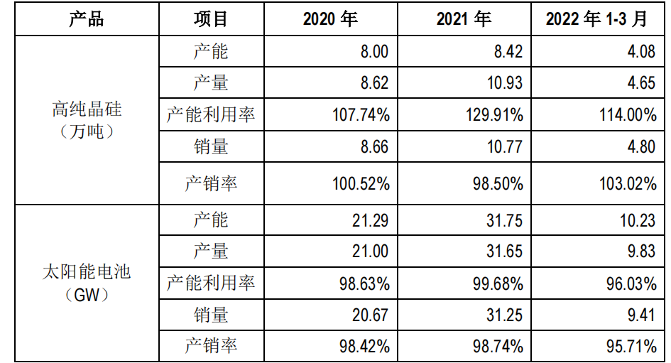 2021年,通威所有在產(chǎn)產(chǎn)能滿負(fù)荷運行,產(chǎn)能利用率約 130%,全年實現(xiàn)銷量 10.77 萬噸,產(chǎn)銷率高達(dá)約100%。