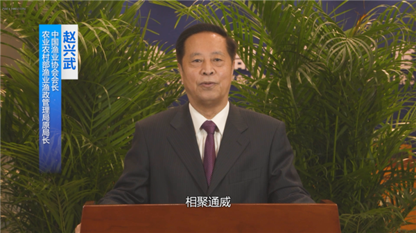 中國漁業(yè)協(xié)會(huì)會(huì)長、農(nóng)業(yè)農(nóng)村部漁業(yè)漁政管理局原局長趙興武致辭