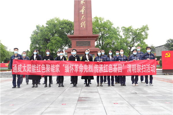 烈士業(yè)績照千秋,星星火炬代代傳。此次祭掃烈士陵園活動,是一次深刻的愛國主義教育及革命傳統(tǒng)教育,激發(fā)了公司黨員對黨和革命先烈的崇敬之情和對祖國的熱愛之情,黨員們表示要以革命先烈為榜樣,學(xué)習(xí)他們不畏艱難、勇于獻身的革命精神,為書寫通威太陽能新征程上的輝煌篇章不懈努力!