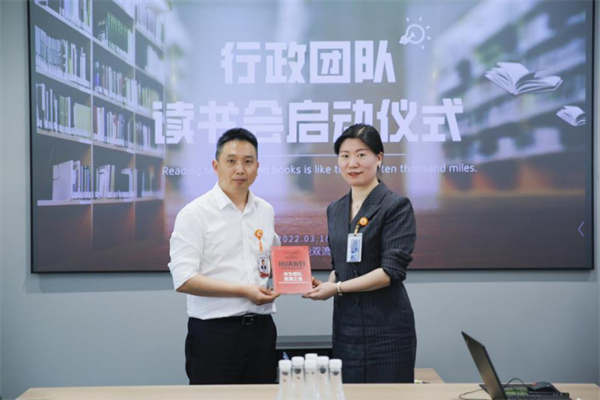 啟動會上,人事行政部相關負責人首先就活動背景、開展方式及年度計劃三個方面對共讀提升計劃進行詳細介紹,表示此次提升計劃結合各崗位工作特點及性格特點,為團隊成員分別準備了《華為團隊管理之道》《共情管理》《共情溝通》《掌控談話》《閉環思維》五本書籍,希望各成員通過閱讀提升共情管理能力、與人溝通的能力,提高溝通效率,提高工作效力,不斷行政保障能力。活動現場,陳總鼓勵大家在各崗位開展工作的同時,多閱讀、多學習、多提升,高效解決工作過程遇到的問題。
