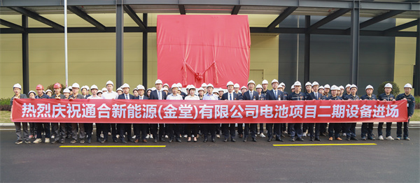 3月16日,通合新能源S2車間門口鞭炮齊鳴,一批批滿載設備的小車緩緩駛入車間,標志著通合新能源電池項目二期設備順利進場。通威太陽能財務總監宋梟、總經理助理陳君,通合新能源總經理助理羅曉云及相關部門負責人、現場員工共同見證這一重要時刻。