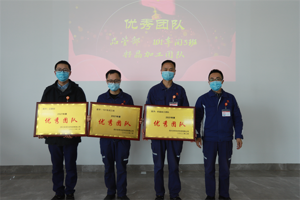 張總首先向各位獲獎(jiǎng)的優(yōu)秀個(gè)人及團(tuán)隊(duì)表達(dá)祝賀,希望大家在接下來(lái)的工作中再接再厲,堅(jiān)守崗位為光伏科技生產(chǎn)建設(shè)貢獻(xiàn)努力。2021年,從硅材料到光伏科技,是一班人馬兩個(gè)戰(zhàn)場(chǎng),在通威、永祥的支持下,在袁總的帶領(lǐng)下,光伏科技圓滿完成了既定目標(biāo)。成績(jī)屬于過(guò)去,2022年,光伏科技全員要認(rèn)清現(xiàn)實(shí),看清當(dāng)前嚴(yán)峻的市場(chǎng)行情,在永祥股份“高效經(jīng)營(yíng),執(zhí)行到位”的經(jīng)營(yíng)思路下,以《打造優(yōu)秀團(tuán)隊(duì)》及《領(lǐng)軍行動(dòng)》為基本行動(dòng)綱領(lǐng),心無(wú)旁騖地打造光伏科技行業(yè)領(lǐng)軍者。