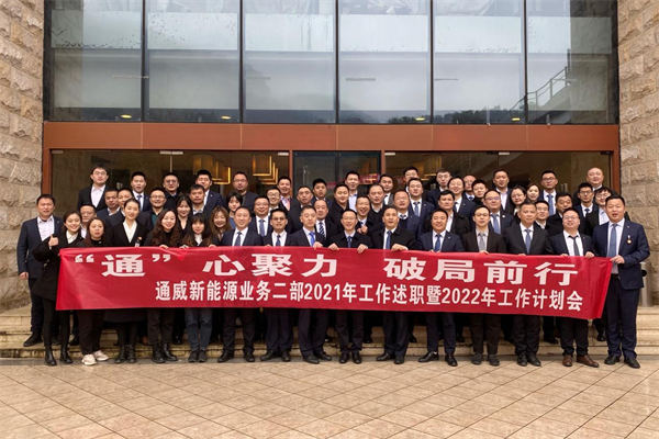 2月9日-11日,通威新能源有限公司業(yè)務(wù)二部舉行2021年工作總結(jié)暨2022年工作計(jì)劃會(huì)。業(yè)務(wù)二部總經(jīng)理?xiàng)钣鲁鱿瘯?huì)議,業(yè)務(wù)二部全體員工參會(huì)。