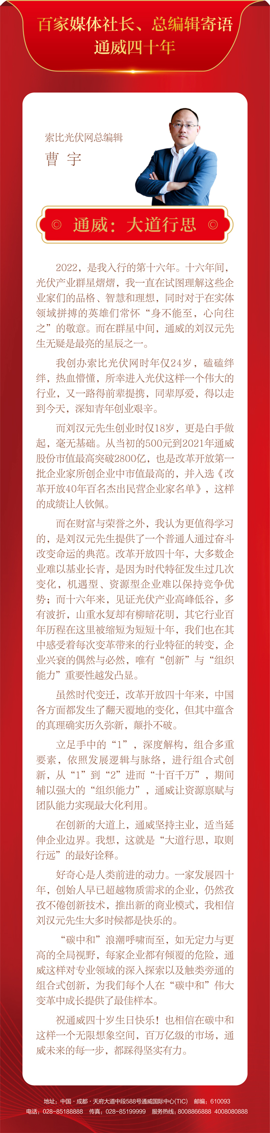 百家媒體社長(zhǎng)、總編輯寄語通威四十年丨通威:大道行思