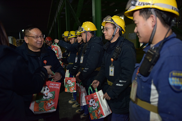 在萬家團圓的日子,李斌董事長心系在崗值守的干部員工,向大家送上新春的問候與關懷,特為所有值守的員工準備了一份特別慰問禮——一杯溫熱的奶茶和糕點,小小的禮盒里面,還有一張李董親筆簽名的小卡片:“親愛的員工:在萬家團圓的日子里,感謝你的堅守與付出,真摯送上最美敬業(yè)福,新春快樂——辛苦了!”。現(xiàn)場干部員工感受到公司對員工濃濃的關懷,紛紛表示,能在永祥這樣的公司工作感到非常幸運,公司董事長在大年夜還親自慰問,讓人倍感溫暖,渾身都充滿了干勁,一定守好安全,穩(wěn)住生產,搞好創(chuàng)新,為公司的高質量發(fā)展全力以赴。