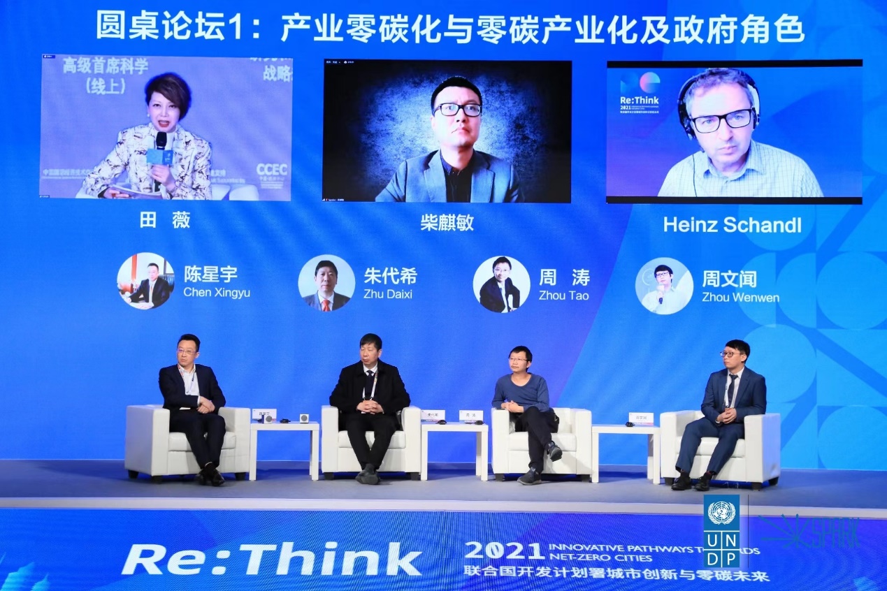 在“產業零碳化與零碳產業化及政府角色”圓桌論壇環節,陳總與達科特董事長兼總經理朱代希 ,新經濟發展研究院iNED執行院長周濤,阿里云能耗云總經理周文聞,澳大利亞聯合科學與工程研究組織高級首席科學家Heinz Schandl,生態環境部國家應對氣候變化戰略研究和國際合作中心戰略規劃部主任柴麒敏,圍繞政府在減碳和推動綠色技術規模化方面發揮的作用、城市尤其是高新區如何支持私營企業在節能減排和加速低碳轉型方面發揮作用,進行了深入探討。