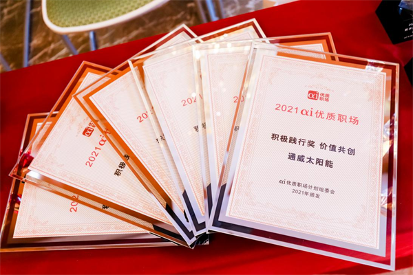 通威太陽能榮獲“2021αi優(yōu)質(zhì)職場積極踐行獎”