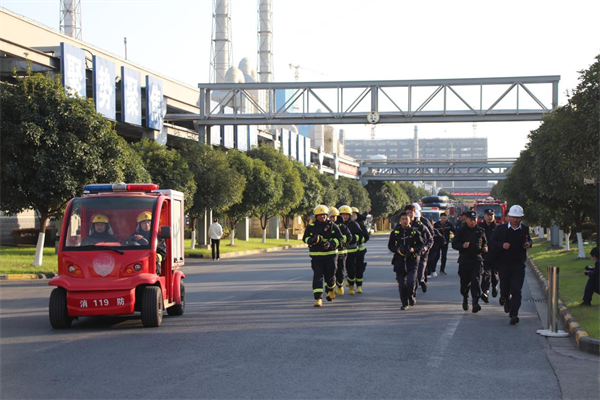演練以“時間跨越、場景位移”的方式,以點帶面展現工貿行業(yè)易發(fā)頻發(fā)的“廠房火災、有限空間窒息、危化品泄漏”事故。演練模擬公司P4車間在檢修時突發(fā)火災,造成6人被困,其中2人不同程度受傷,在處置過程中,又相繼發(fā)生有限空間作業(yè)人員中毒窒息事故及液氨鋼瓶泄漏事故,共設置事故發(fā)生與信息報告、響應啟動與先期處置、事態(tài)升級與應急聯(lián)動、應急終止與后期處置等4個環(huán)節(jié)。