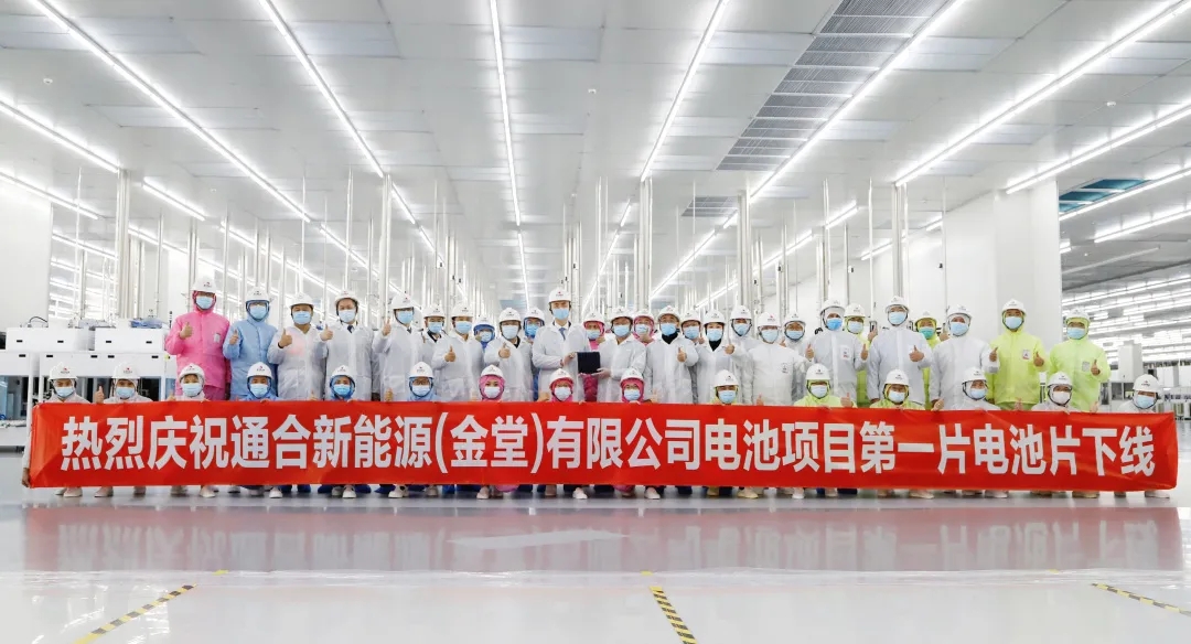 11月10日,通合新能源(金堂)有限公司15GW高效電池項目第一片電池片順利下線。這是繼7月16日通威太陽能(金堂)有限公司1GW異質結(HJT)電池項目第一片電池片成功下線后的又一重要時刻,再次彰顯了在光伏產業發展道路上的“金堂速度”。