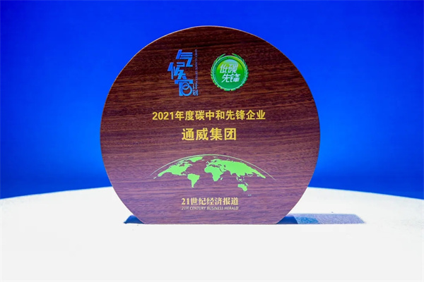 與此同時,碳中和先鋒企業(yè)年度案例(2021)正式發(fā)布,通威集團與騰訊、美團等九家企業(yè)共同入選“2021年度碳中和先鋒企業(yè)”年度案例,并榮獲“2021年度碳中和先鋒企業(yè)”稱號。通威集團作為我國唯一一家新能源企業(yè)入選該案例并獲獎,展現(xiàn)了社會各界對于通威多年來始終堅持綠色低碳發(fā)展,積極助力并打造“碳達峰、碳中和”“通威樣本”的高度認可。
