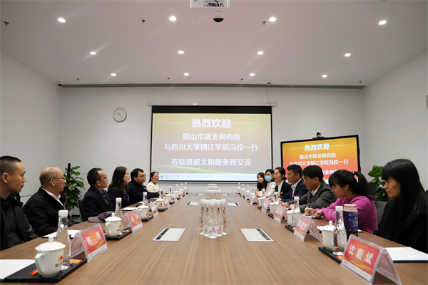 座談會上,通威太陽能眉山基地相關負責人首先對向陽局長及馮建校長一行蒞臨眉山基地交流表示熱烈歡迎,并就通威太陽能的發展歷程、前景規劃以及校企合作訂單班的管理、培養機制進行了詳細介紹。