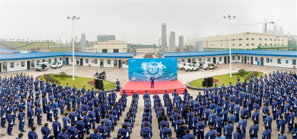 11月2日早上8點,永祥新能源隆重舉行二期5.1萬噸高純晶硅項目調試開車誓師大會。永祥股份董事長兼總經理李斌率領公司領導班子與近500名員工出席大會,大家精神振奮,莊嚴宣誓,誓守安全,嚴格遵守十大禁令,確保精心操作,各項標準落到實處。