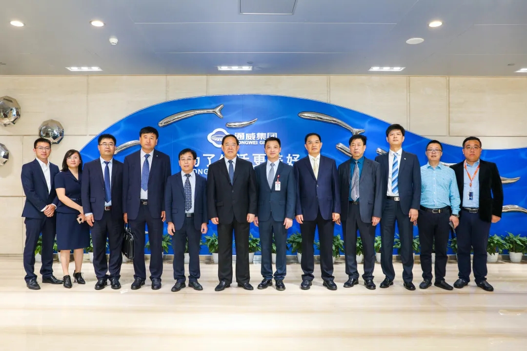10月14日,山東好當家海洋發展股份有限公司董事長唐傳勤一行蒞臨通威考察。十一屆全國政協常委、全國人大代表、通威集團董事局劉漢元主席熱情接待并座談,通威股份董事長謝毅,通威新能源執行董事兼總經理邱艾松,通威股份原料部部長何東鍵,通威新能源業務一公司總經理冷剛等陪同接待。
