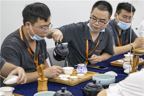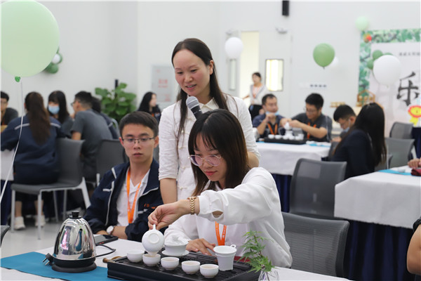 在開場小游戲之后,茶藝老師帶來了一段精彩的茶藝表演,用淺顯易懂、風趣幽默的語言為大家生動地普及了茶的起源發展、茶具的分類和作用等茶藝知識。