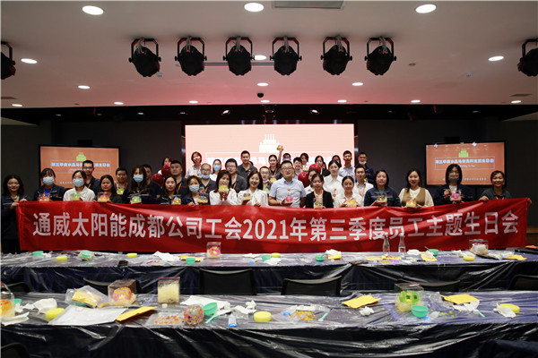 為加強對員工的人文關(guān)懷,讓每一位通威太陽能員工切實感受到大家庭的溫暖,加強團隊建設(shè),凝聚團隊活力,9月23日,通威太陽能合肥、雙流基地第三季度生日員工歡聚一堂,開展了一堂以手工DIY為主題的生日會活動。