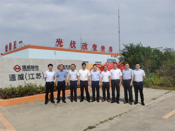 徐市長(zhǎng)一行參觀了龍袍基地光伏、養(yǎng)殖生產(chǎn)情況,并沉浸式地了解到一只健康的大閘蟹、一度清潔能源是怎么生產(chǎn)出來(lái)的。參觀過(guò)程中,考察團(tuán)不時(shí)駐足討論,充分肯定了通威在水產(chǎn)、新能源行業(yè)的全球領(lǐng)先地位和技術(shù)優(yōu)勢(shì),對(duì)通威在“漁光一體”協(xié)同發(fā)展的模式表示高度認(rèn)同。
