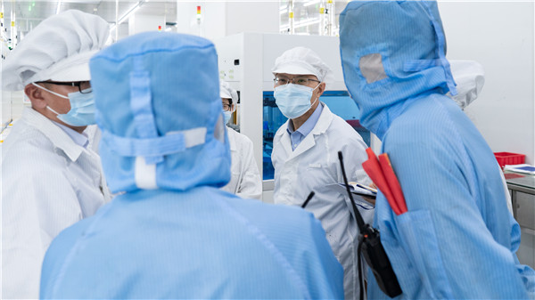 高管團隊在雙流基地電池車間了解節日期間生產情況