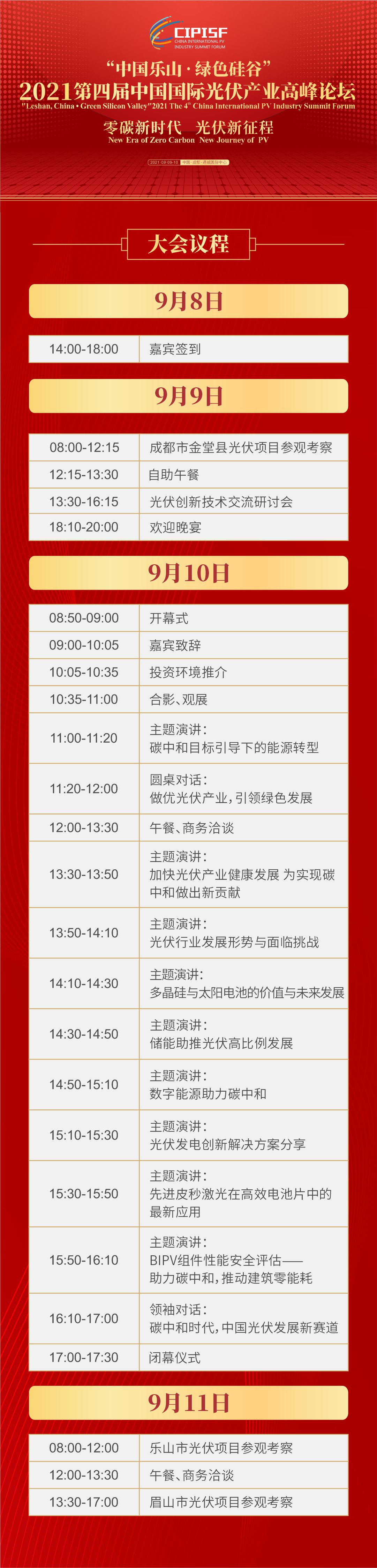 9月9日-10日,2021第四屆中國國際光伏產(chǎn)業(yè)高峰論壇將于成都通威國際中心隆重舉行。本屆論壇在連續(xù)三屆成功舉辦的基礎(chǔ)上,以“零碳新時代 光伏新征程”為主旨,匯聚光伏產(chǎn)業(yè)各界權(quán)威,圍繞中國光伏產(chǎn)業(yè)發(fā)展的焦點問題,展示前沿成果,并搭建“政、產(chǎn)、學、研、金”為一體的高端合作平臺,促進產(chǎn)學研深度合作,為各界創(chuàng)造專業(yè)化合作交流與協(xié)同創(chuàng)新平臺。