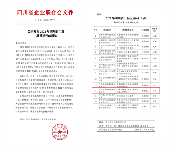 永祥新能源榮列2021年四川省工業(yè)質(zhì)量標(biāo)桿名單
